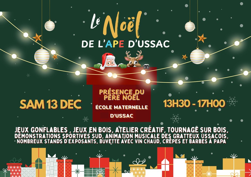 L’APE organise le Noël des enfants à l’école maternelle le samedi 13 décembre de 13h30 à 17h.